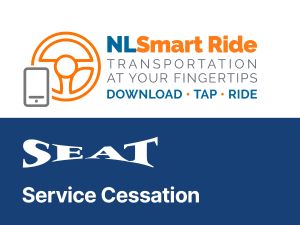 Smart Ride Update. The original plan to suspend Smart Ride on July 1, has been delayed to August 1, 2025. The Board of Directors is reviewing options for continuing the service beyond August 1 at a Work Session on June 24, 2025. Smart Ride was funded with special one-time Federal COVID grants, and those grants have expired. SEAT continues to provide fixed route bus service and ADA paratransit service (for those individuals with a disability who qualify) throughout New London. Any pre-paid fares for Smart Ride are accepted on all SEAT buses, and staff is ready to assist customers in transitioning to that service. In addition, ECTC (Eastern CT Transportation Consortium) may have transportation options for New London residents. www.seatbus.com 860-886-2631 ECTC 860-848-5910 Home